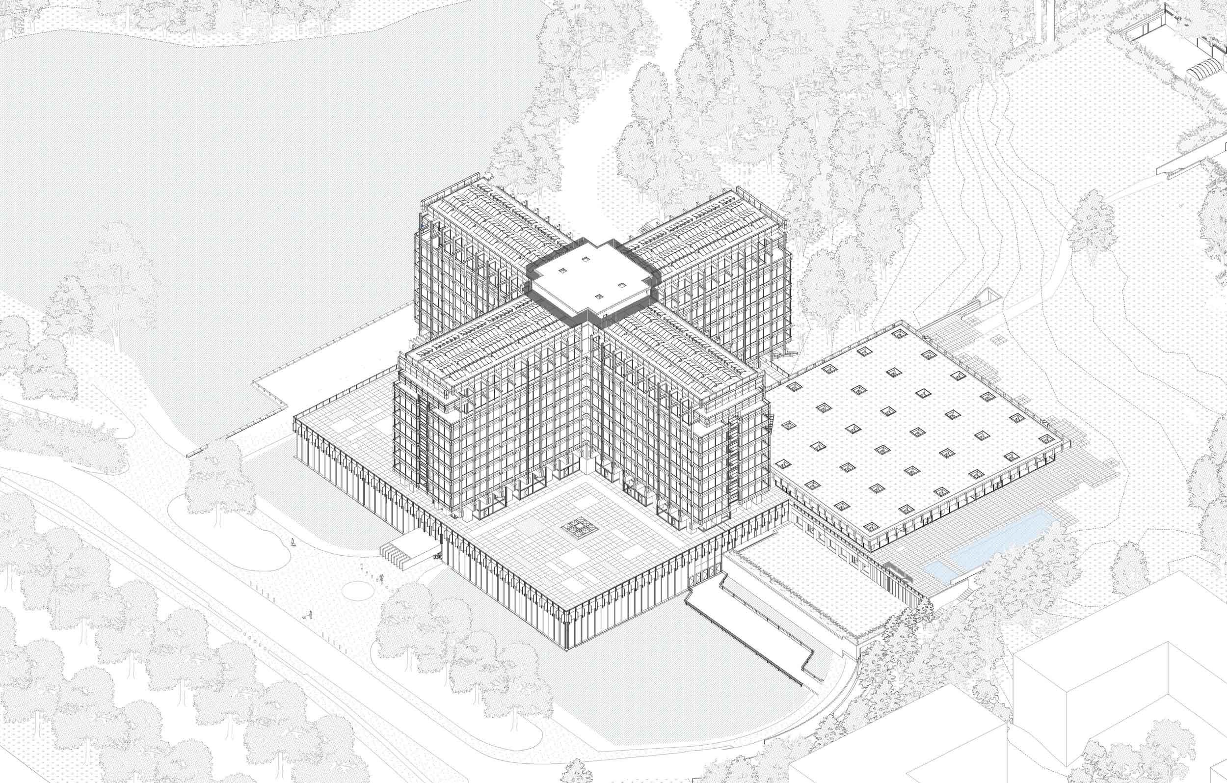De nieuwe eigenaar wenste verschillende gebruikers in het gebouw onder te brengen. Het geheel werd heringericht met een conferentieruimte, kantoren, co-workingfaciliteiten, een hotel, wellness en restaurant. Waar mogelijk worden materialen na afbraak opnieuw gebruikt. De glazen gevel van de buitenzijde wordt vervangen door beglazing met een bijna identiek uiterlijk, maar met een thermische prestatie naar hedendaagse normen.