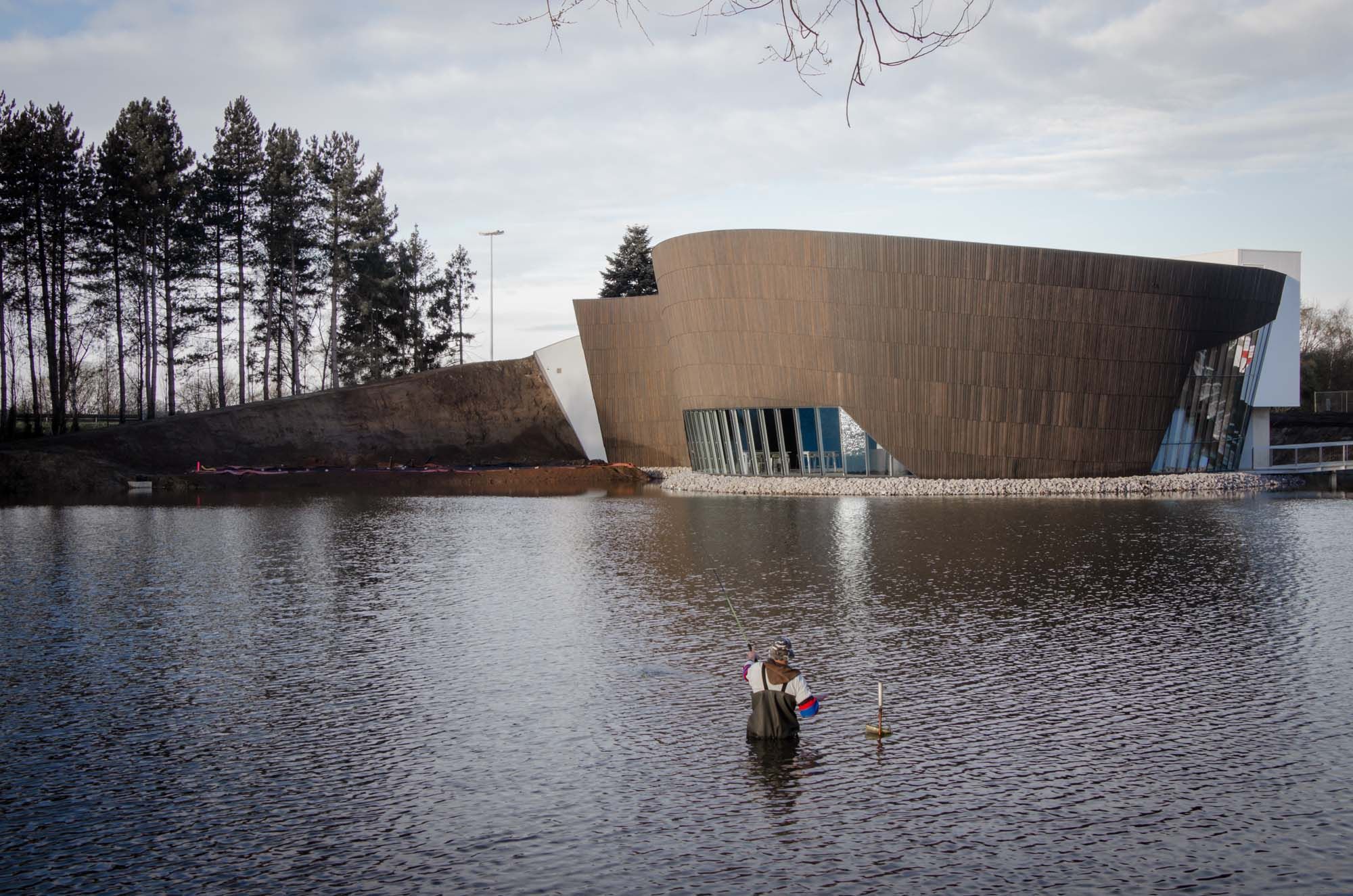 Le bâtiment abrite un centre de formation et d’innovation logistique et se trouve sur une presqu’île de l’étang existant. Le volume a été érigé sous un sol artificiel de niveau. Il s’ensuit une toiture verte praticable avec parcours finlandais. Le bâtiment est accessible par une passerelle.