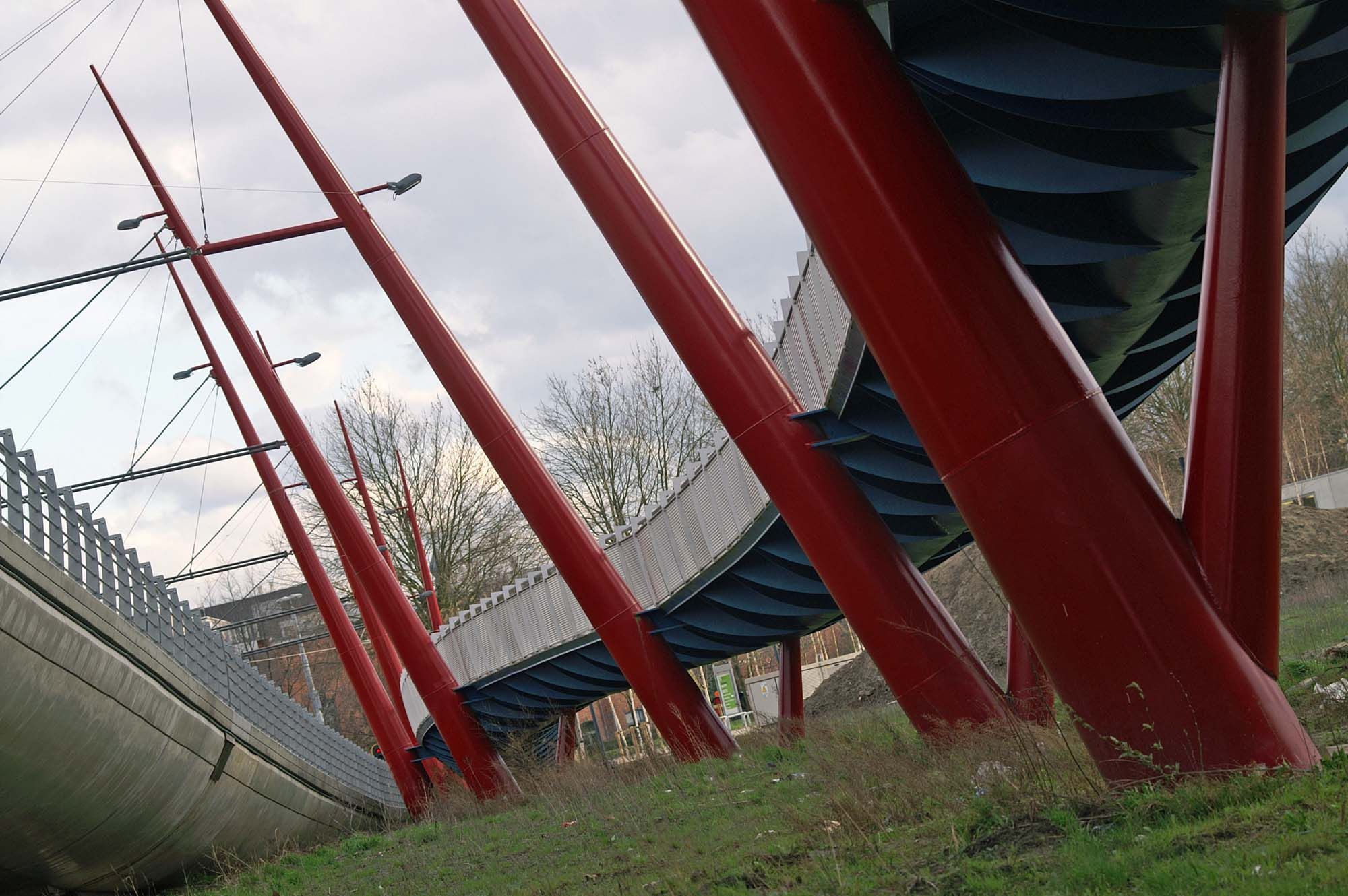 La passerelle pour cyclistes mesure 440 m de long et est constituée de 18 travées de 20 mètres. Chaque partie possède une amorce de 80 à 90 m. L’ensemble de la structure est constitué d’un peu plus de 480 tonnes d’acier de construction. La passerelle est suspendue à 23 mâts coniques en acier. L’acier est de qualité S235 et S355.